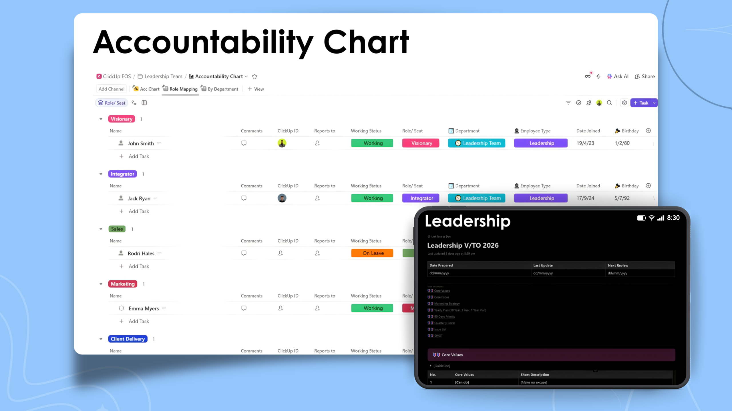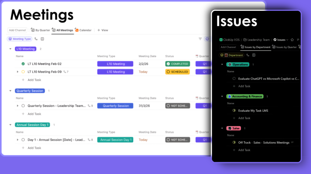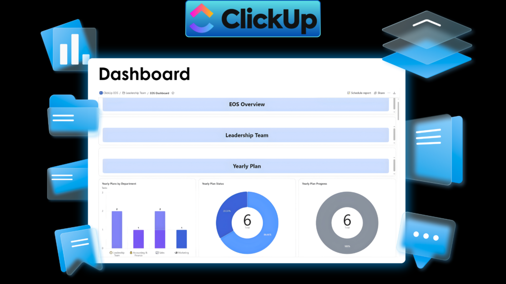 ☑️ ClickUp Business or Enterprise required – Designed for ClickUp Business and Enterprise plans to support dashboards and structured EOS compatible workflows.