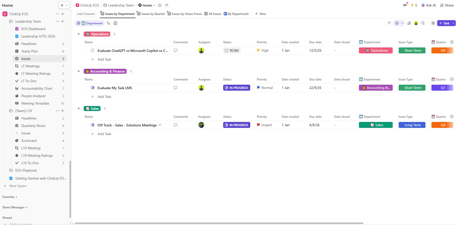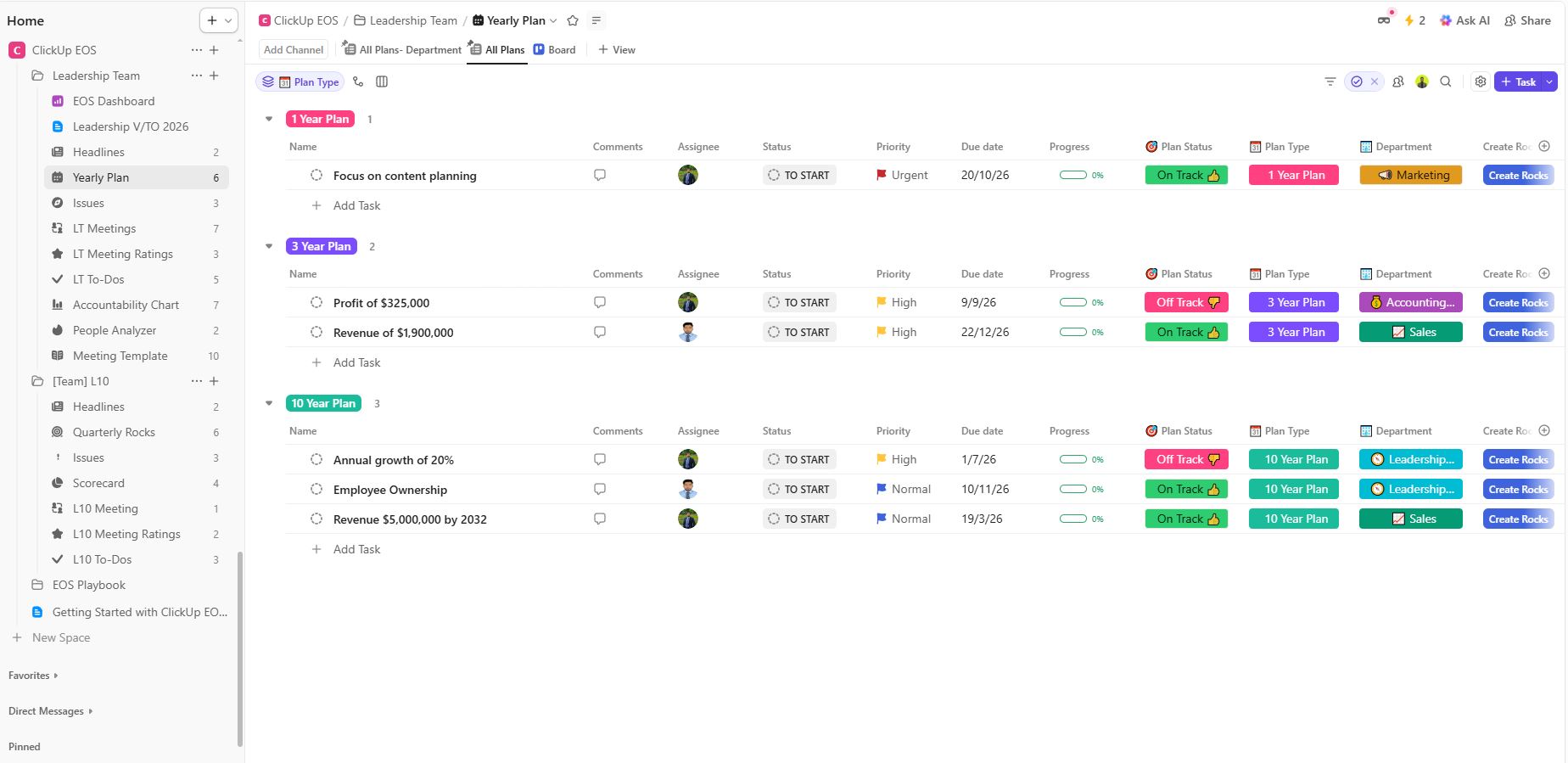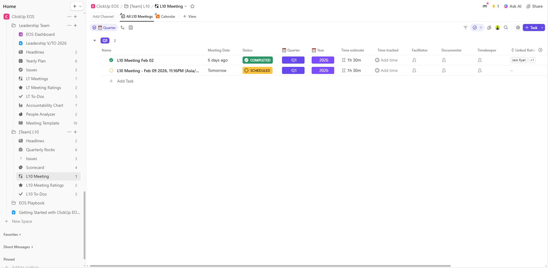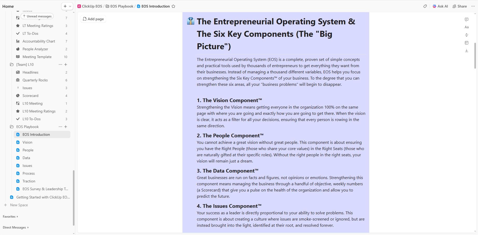 Our ClickUp EOS compatible template puts everything in one place – for a one-time cost.