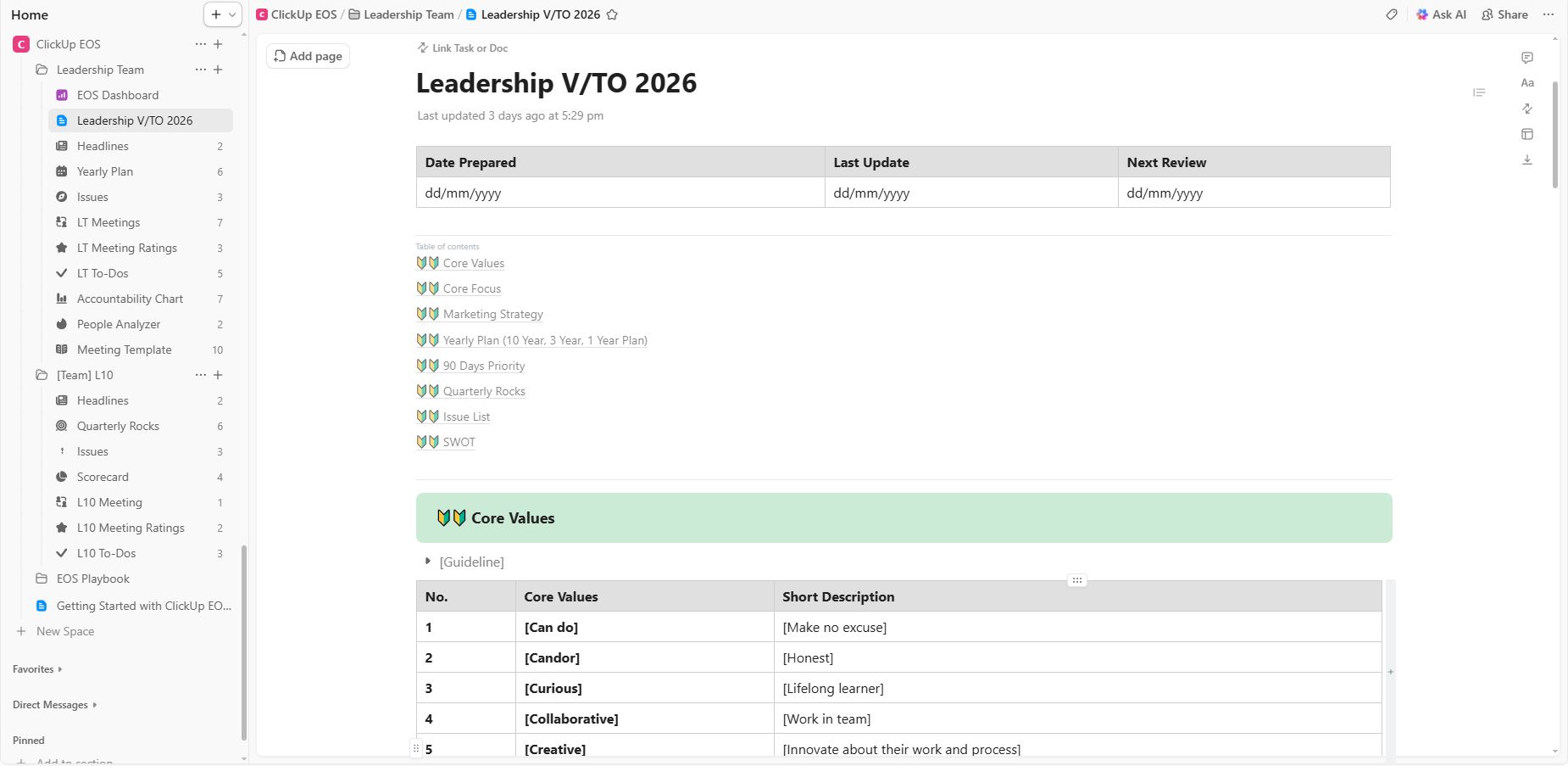 ClickUp EOS Template - $98