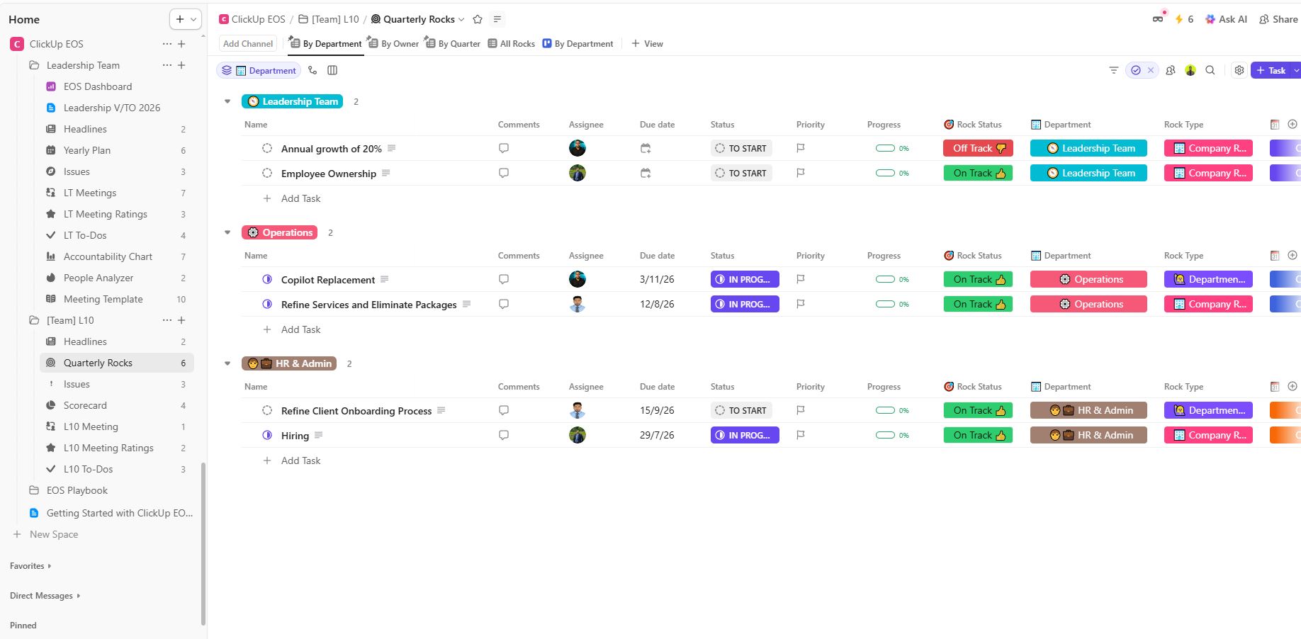 Remove operational chaos with EOS compatible ClickUp Business OS template