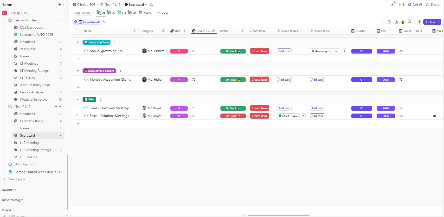 ☑️ Purpose-built EOS dashboards – Leadership dashboards provide real-time visibility across Scorecards, Rocks, Issues, and To-Dos.
