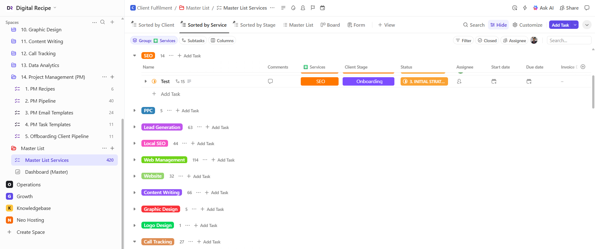 ClickUp for digital marketing agency operations became essential for Digital Recipe as the agency scaled to managing 14 services across multiple clients. Digital Recipe is a Sydney-based digital marketing agency known for its no-nonsense approach and obsession with results. Since 2018, they’ve helped small and medium businesses across Australia grow through SEO, PPC, and digital strategy.